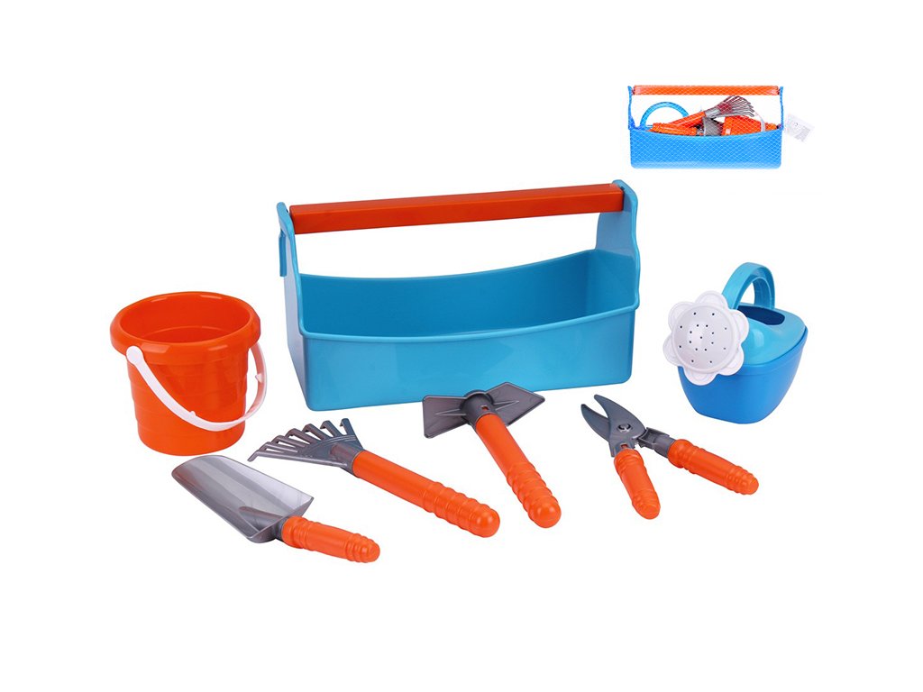 Nářadí zahradní 4ks s kbelíkem a konvičkou v přepravce 30x14cm v síťce