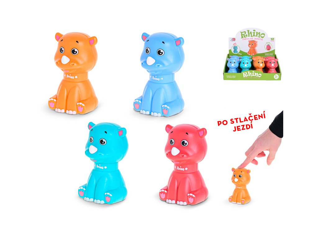 Nosorožec 10cm po stlačení jezdící 4barvy 12ks v DBX