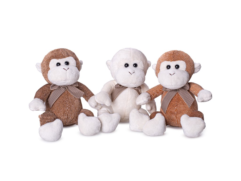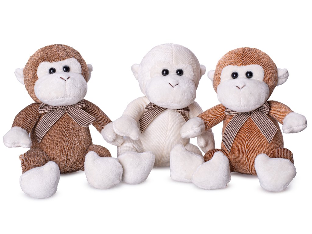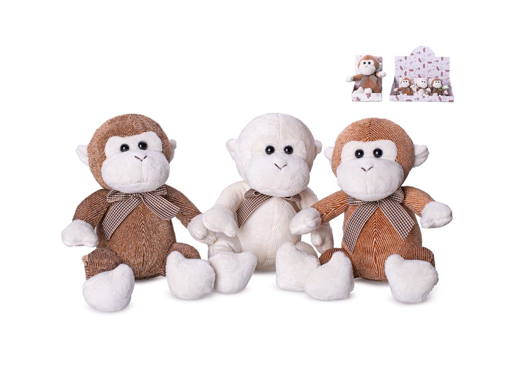 Opice plyšová 15cm sedící s mašlí 3barvy v krabičce 12ks v DBX