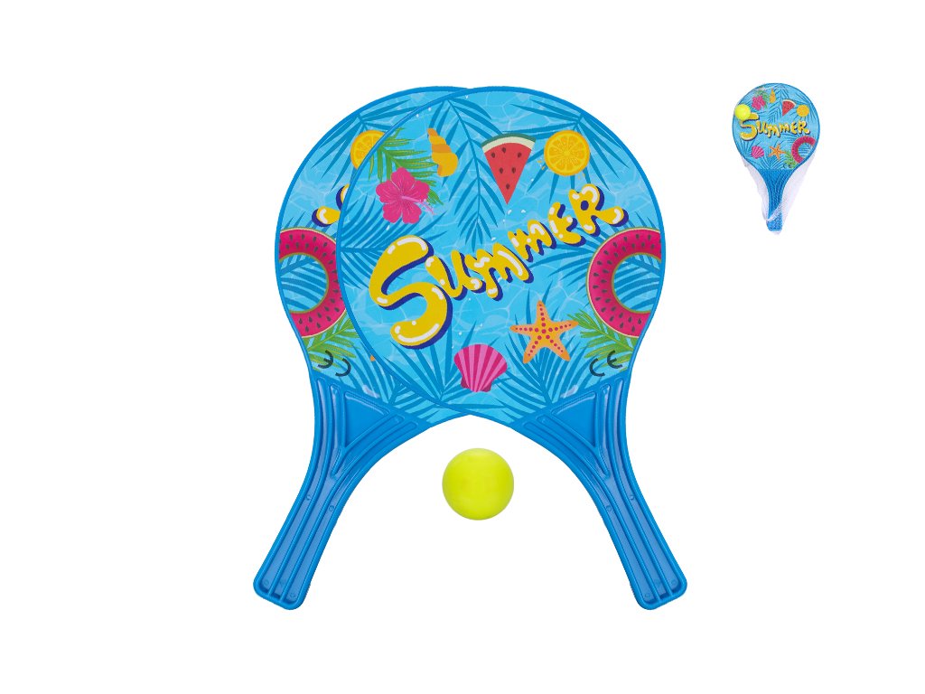 Pálky plážové 37,5cm modré 2ks s míčkem 4cm v síťce