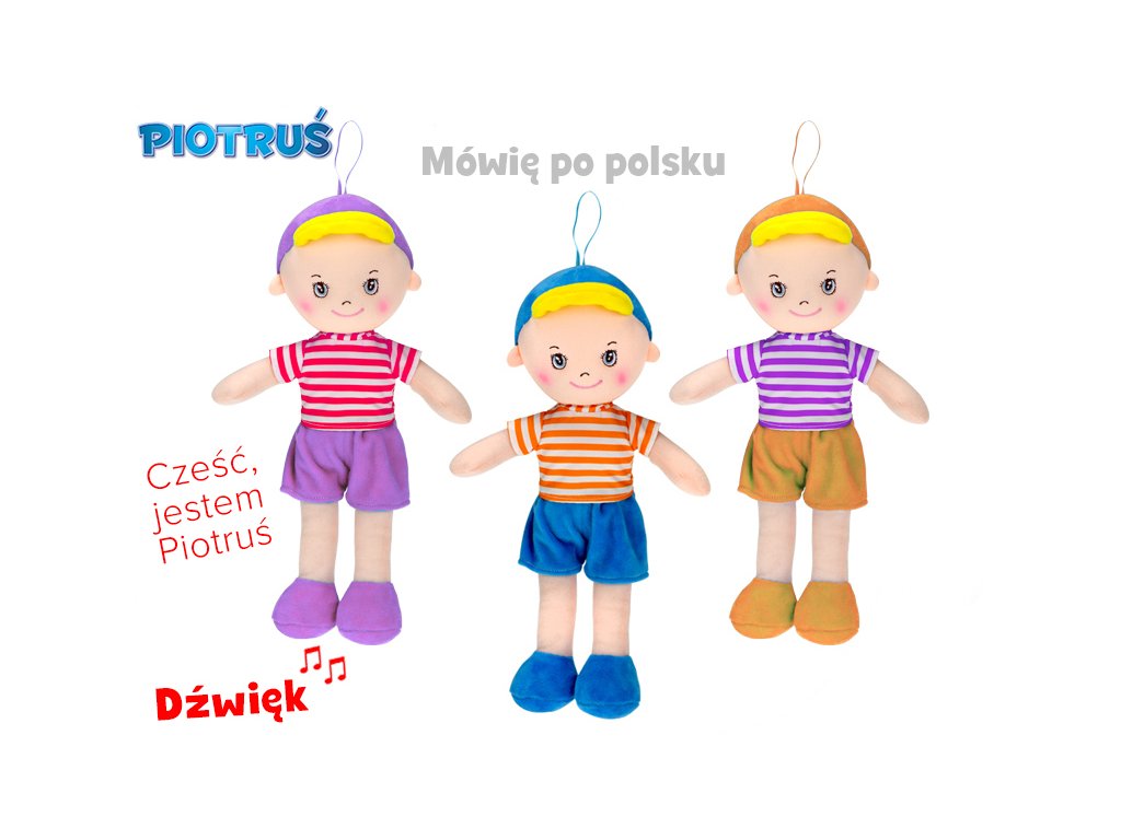 Panáček Piotrus' hadrový 32cm na baterie polsky mluvící 3barvy 0m+