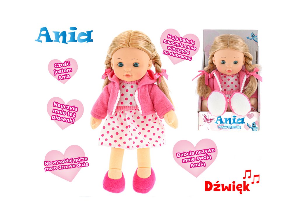 Panenka Ania 31cm mrkací měkké tělo na baterie polsky mluvící v krabičce