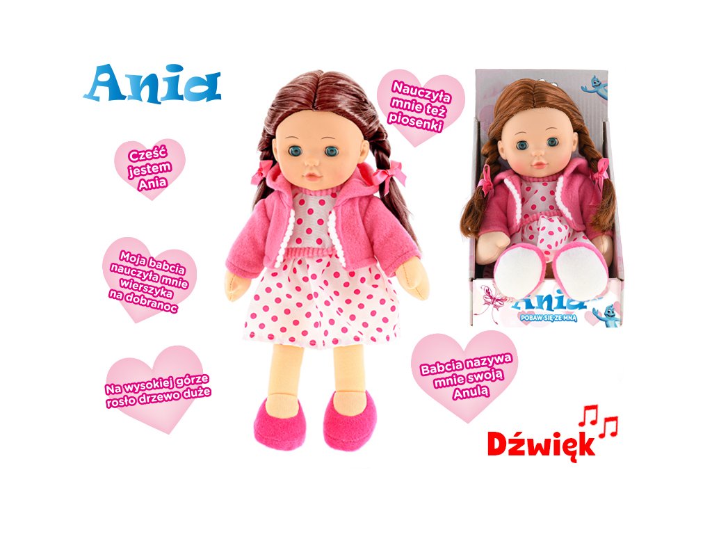 Panenka Ania 31cm mrkací měkké tělo na baterie polsky mluvící v krabičce