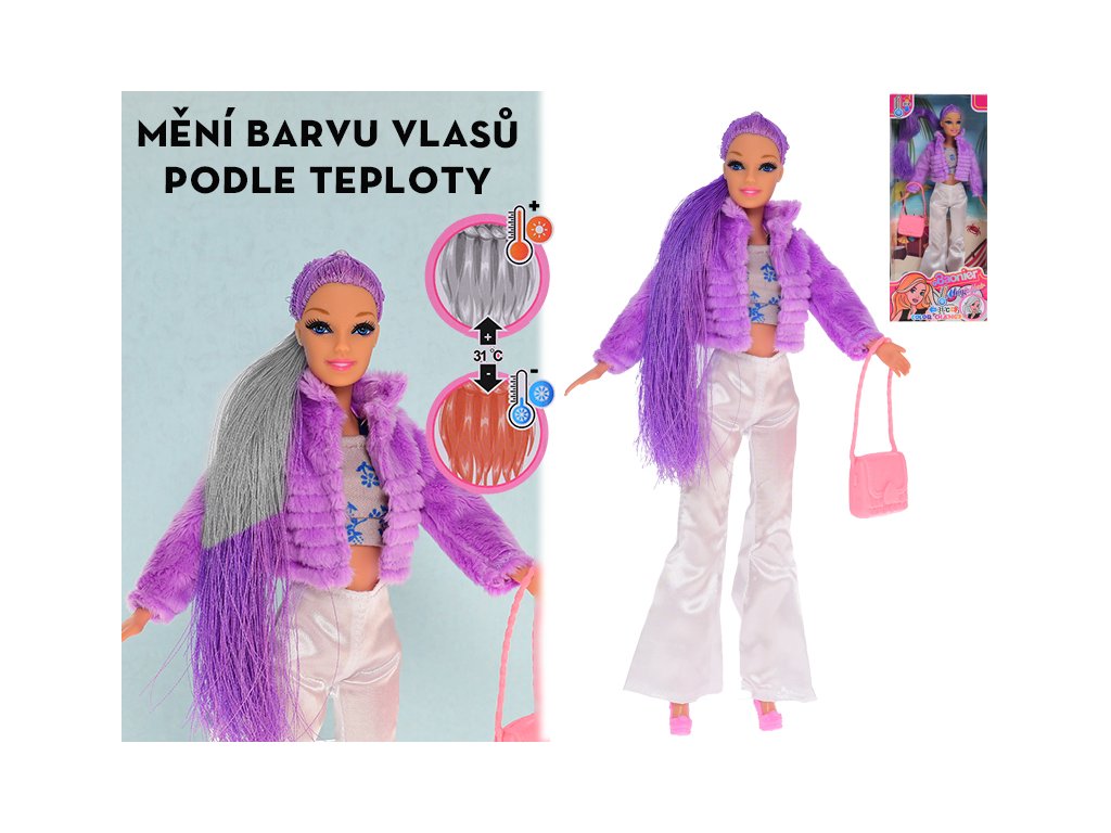 Panenka módní 29cm s vlasy měnící barvu a doplňky v krabičce