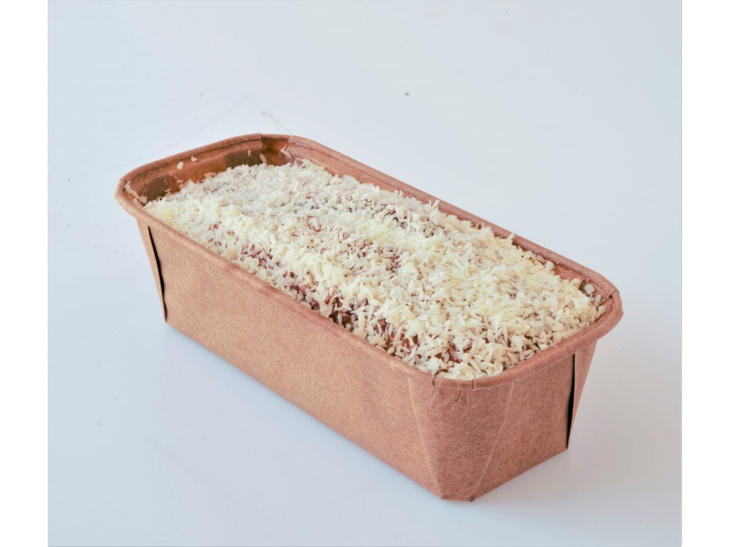 VEJCE, směs na bezlepkový moučník (rýžová mouka, škrob tapiokový, škrob bramborový, čiroková mouka, fazolová mouka, kakaový prášek, kypřící látky: E341, E500ii, cizrnová mouka, skořice, stabilizátory: E417, E415, fenykl, koriandr, hřebíček, anýz, sůl), cukr, řepkový olej, voda, čokoládová poleva 5,3 % (čokoláda 4,2 % [Kakaová hmota 51,5 %, třtinový cukr 41 %, kakaové máslo 7 %, SÓJOVÝ lecitin], kokosový tuk), strouhaný kokos 1,7 %.Nutriční složení