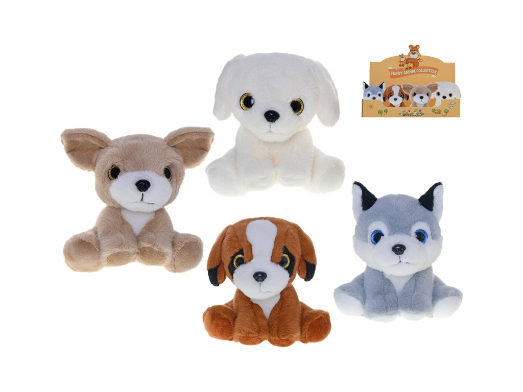Pes plyšový 14cm sedící třpytivé oči 4druhy 0m+ 8ks v DBX