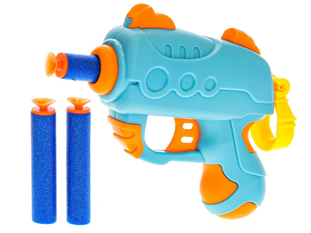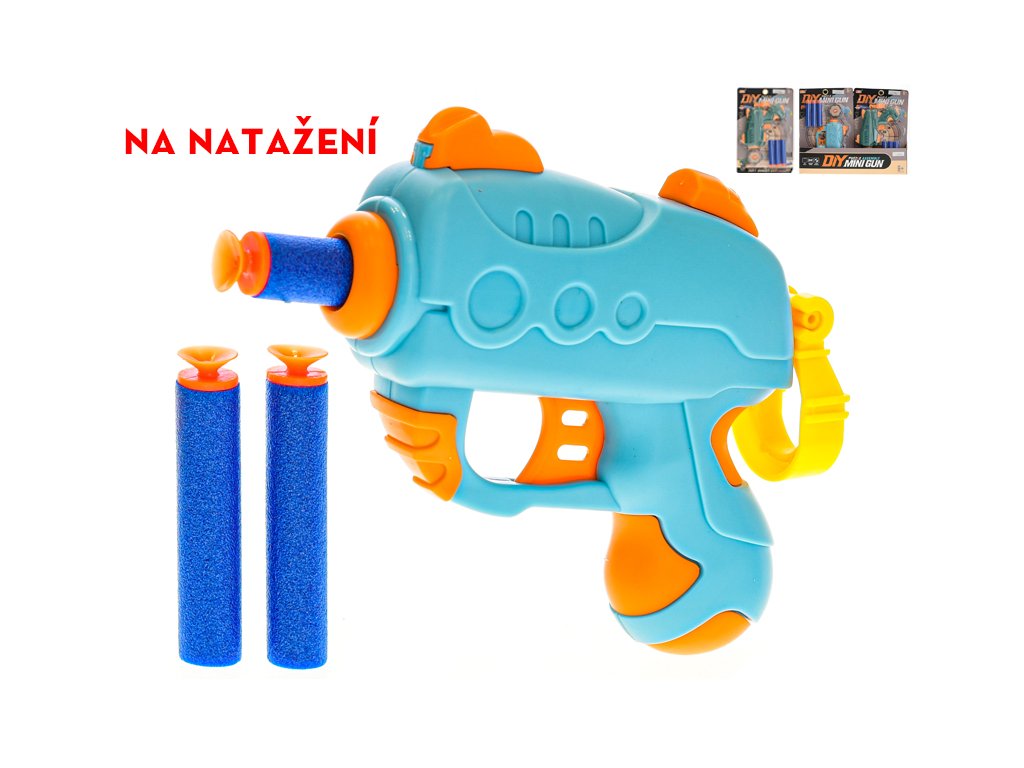 Pistole 10,5cm na natažení s pěnovými náboji 3ks a terčem 2barvy na kartě 12ks v PDQ