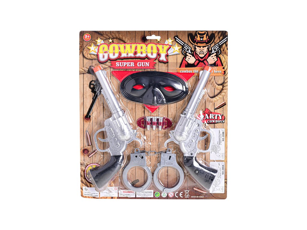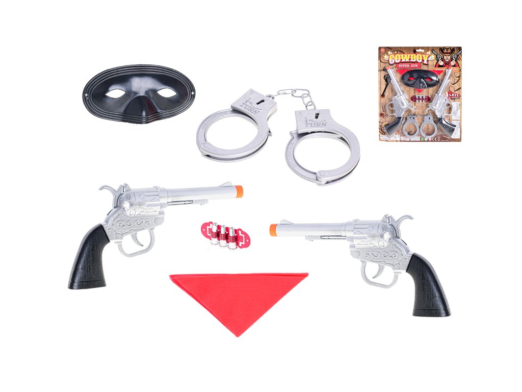 Pistole kovbojské 2ks s pouty a maskou na kartě