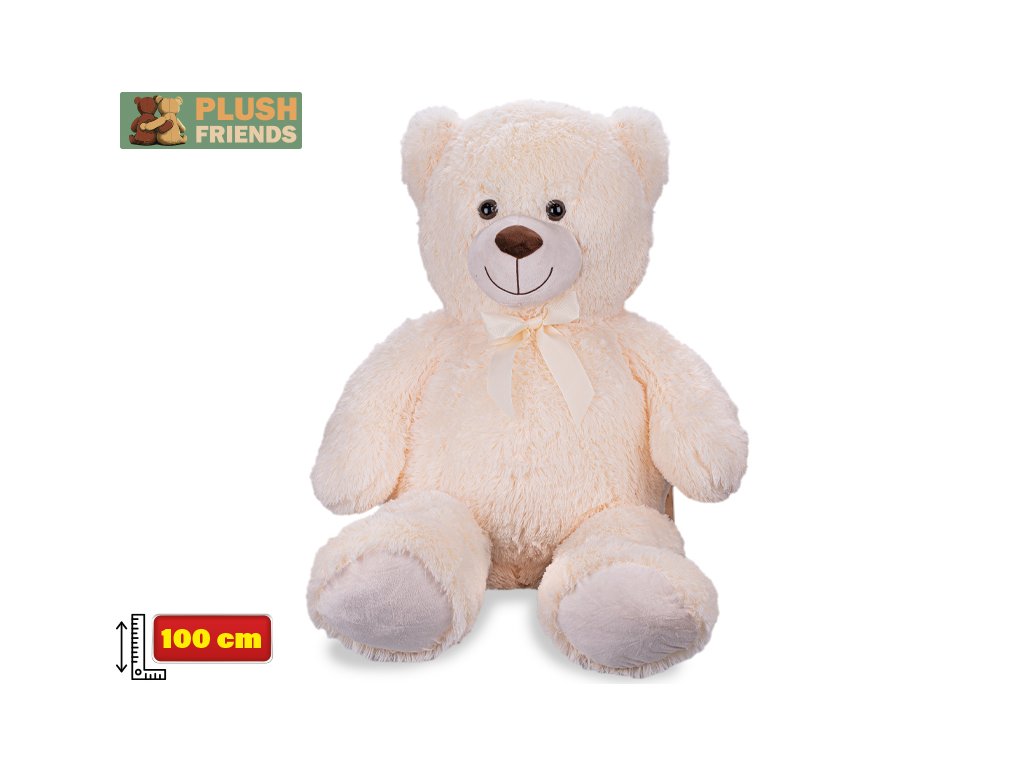 Plush Friends medvěd plyšový 100cm krémový s mašlí 0m+