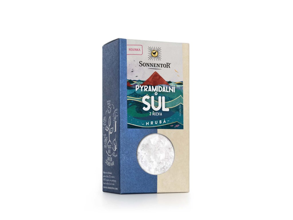 Jemně křupavé vločky soli ve tvaru pyramidek dodají šmrnc každému grilovanému pokrmu. Vznikají pomalým zahříváním a následným odpařováním slané mořské vody. Postupně se formující pyramidy mají příjemně slanou chuť. Tip: Křupavé vločky soli na horkém jídle rychle tají. Přidejte je proto nejlépe ke konci vaření na již hotový pokrm, kde jejich krása vynikne. Perfektně se hodí na steak, špízy a vše, co se objeví na grilu.Pyramidální sůl