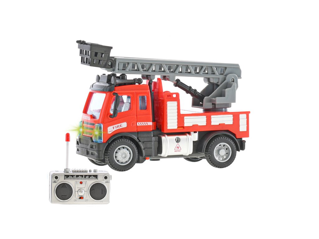 R/C auto hasičské se žebříkem 13cm 1:64 plná funkce na baterie se světlem 27MHz v krabičce