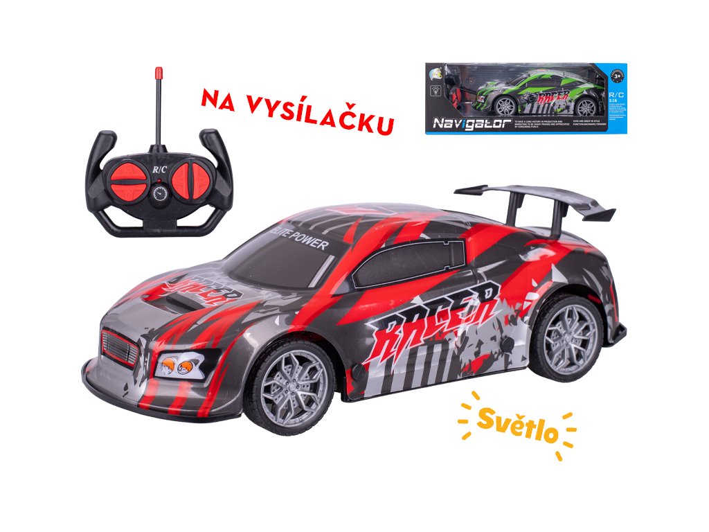 R/C auto závodní 26cm 27MHz plná funkce na baterie se světlem 2barvy v krabičce