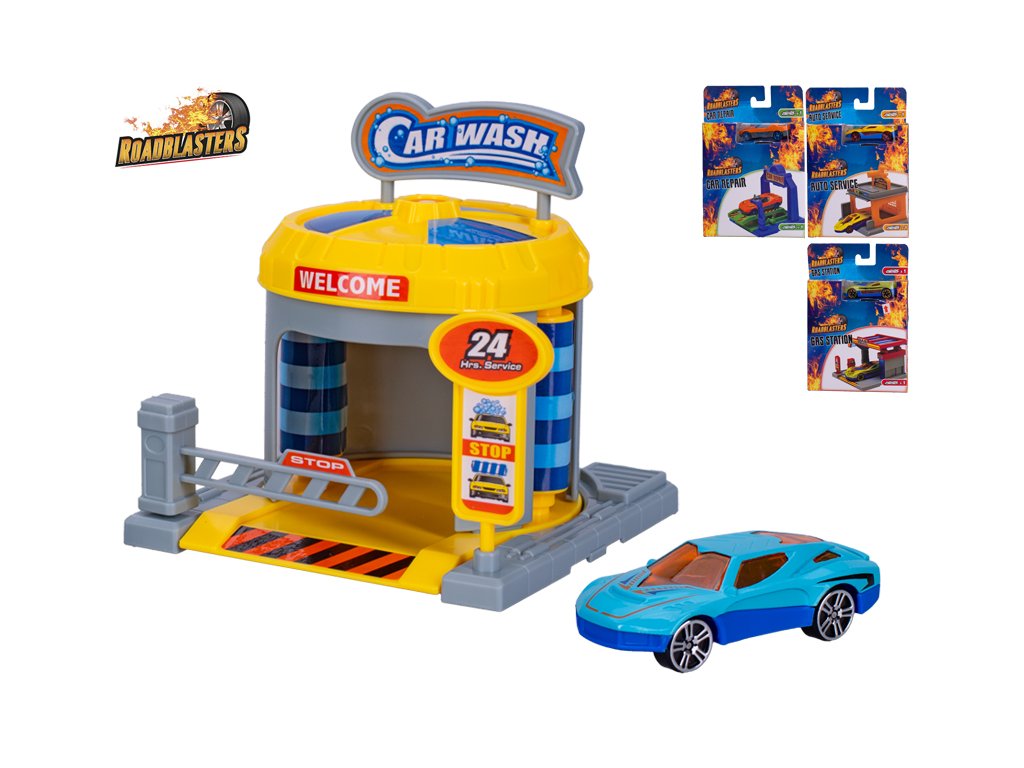 Roadblasters autodílna s autem 7cm 1:64 4druhy v krabičce