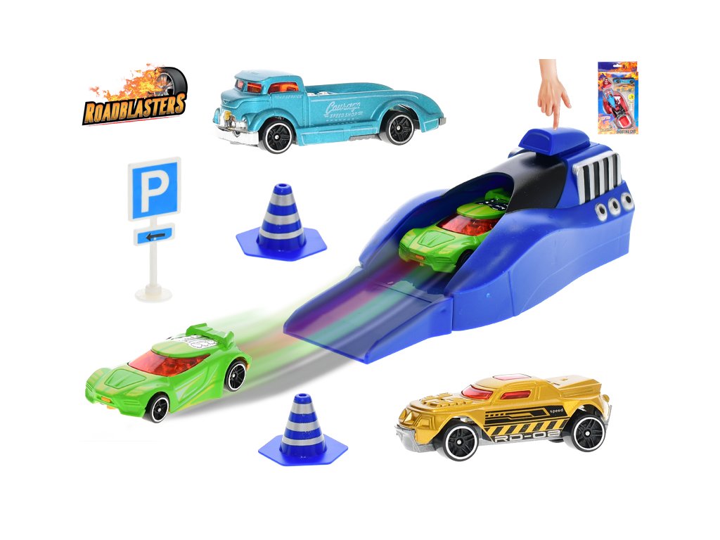 Roadblasters sada aut 6,5cm 3ks vystřelovací + dopravní značky 2barvy v krabičce