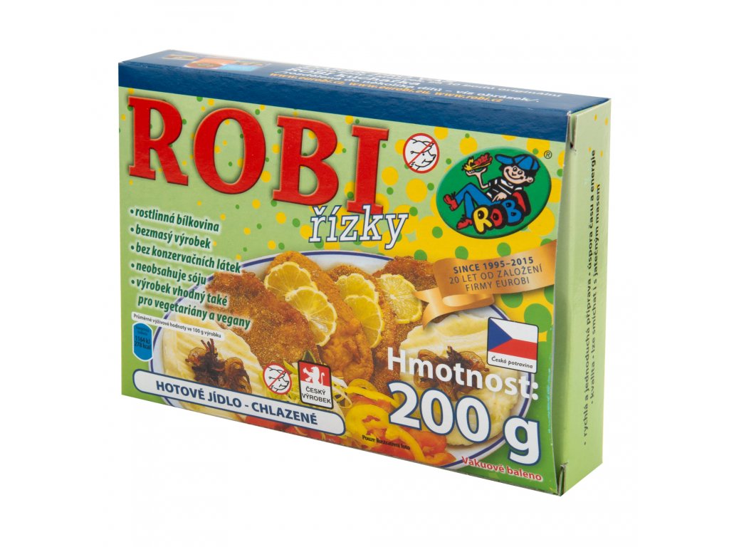 Robi 90% (voda, PŠENIČNÁ bílkovina, PŠENIČNÁ mouka, červená řepa sterilovaná [červená řepa, voda,cukr, sůl, ocet, výtažky koření], sůl, barvivo karamel), strouhanka (PŠENIČNÁ mouka, voda, droždí, sůl), PŠENIČNÁ mouka, rostlinný olej řepkový, česnek, vegeta bez glutamanu.Příprava