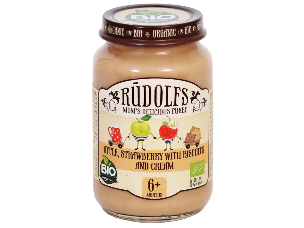 Rudolfs BIO Jablko, jahody, sušenky, smetana 190 g
