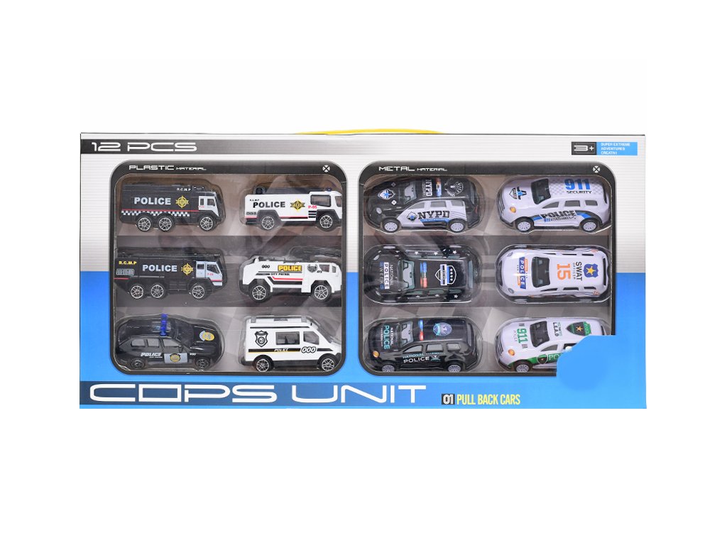 Sada aut policejních 7-8cm 6ks volný chod + 6ks kov na zpětný hod v krabičce