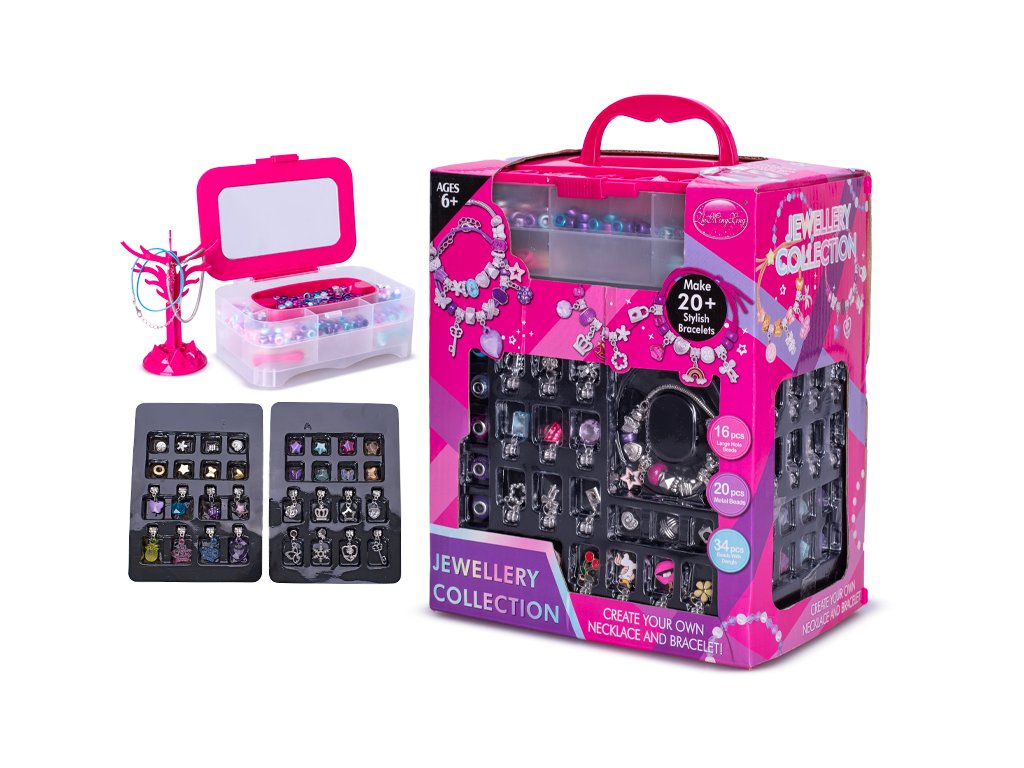 Sada korálků a přívěsků se šperkovnicí 19x13,5cm v krabičce