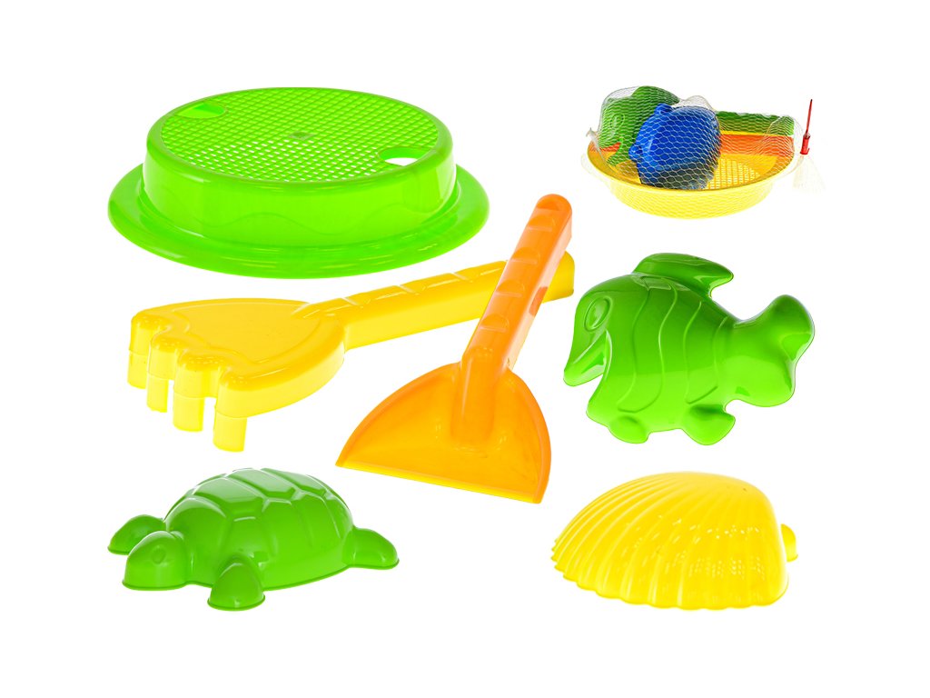 Sada na písek 3ks 20cm (sítko, lopatka, hrábě) a 3ks formiček 10-11cm 2barvy 10m+ v síťce