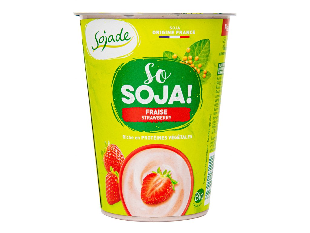 SÓJOVÝ nápoj* 78%, jahody* 9%, třtinový cukr*, přírodní jahodové aroma*, koncentrovaná bezová šťáva, koncentrovaná citronová šťáva*, zahušťovadla: tapiokový škrob*- agar-agar*, reguláror kyselosti:citronan vápenatý, vybrané živé kultury Bifidus a Acidophilus. *produkt kontrolovaného ekologického zemědělstvíPříprava