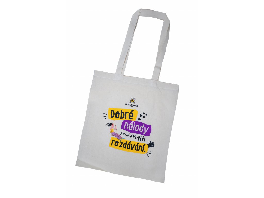 Dobré nálady mám na rozdávání - plátěná taška ze 100% biobavlny pro pohodlné nošení přes rameno i v dlani. Je praktická a skladná. Rozměr: 37 x 42 cm Délka ucha: 70 cm Certifikát: FAIR TRADETento produkt neobsahuje žádné alergeny.