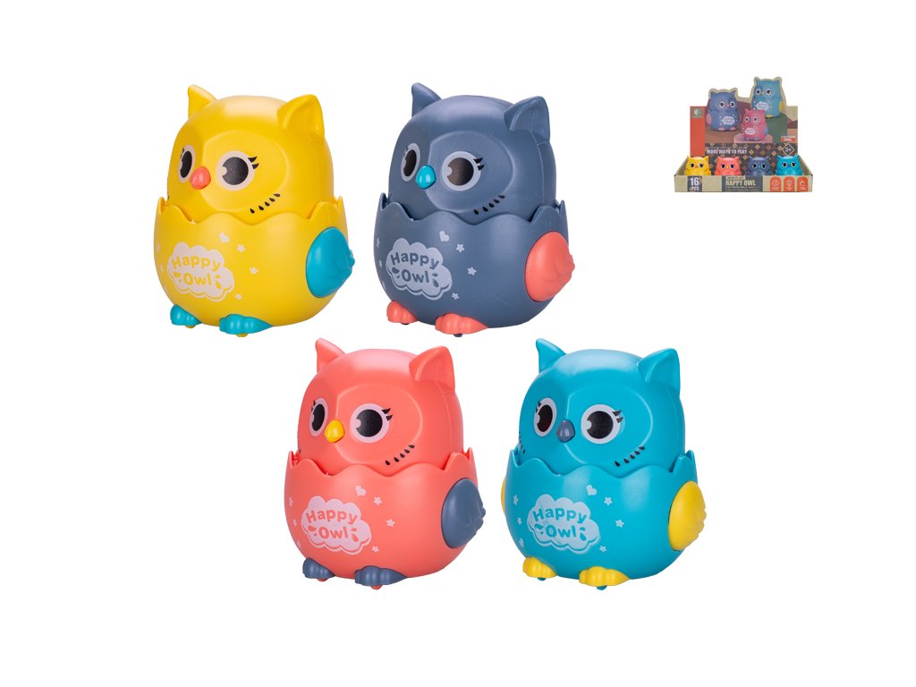 Sova 7cm po stlačení jezdící 4barvy 16ks v DBX