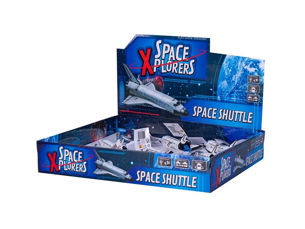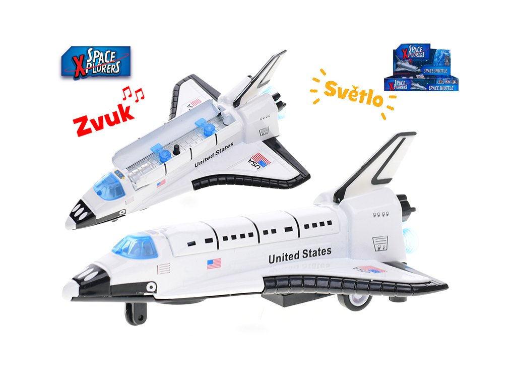 Space Xplorers raketoplán kov 15cm 1:400 zpětný chod na baterie se světlem a zvukem 9ks v DBX