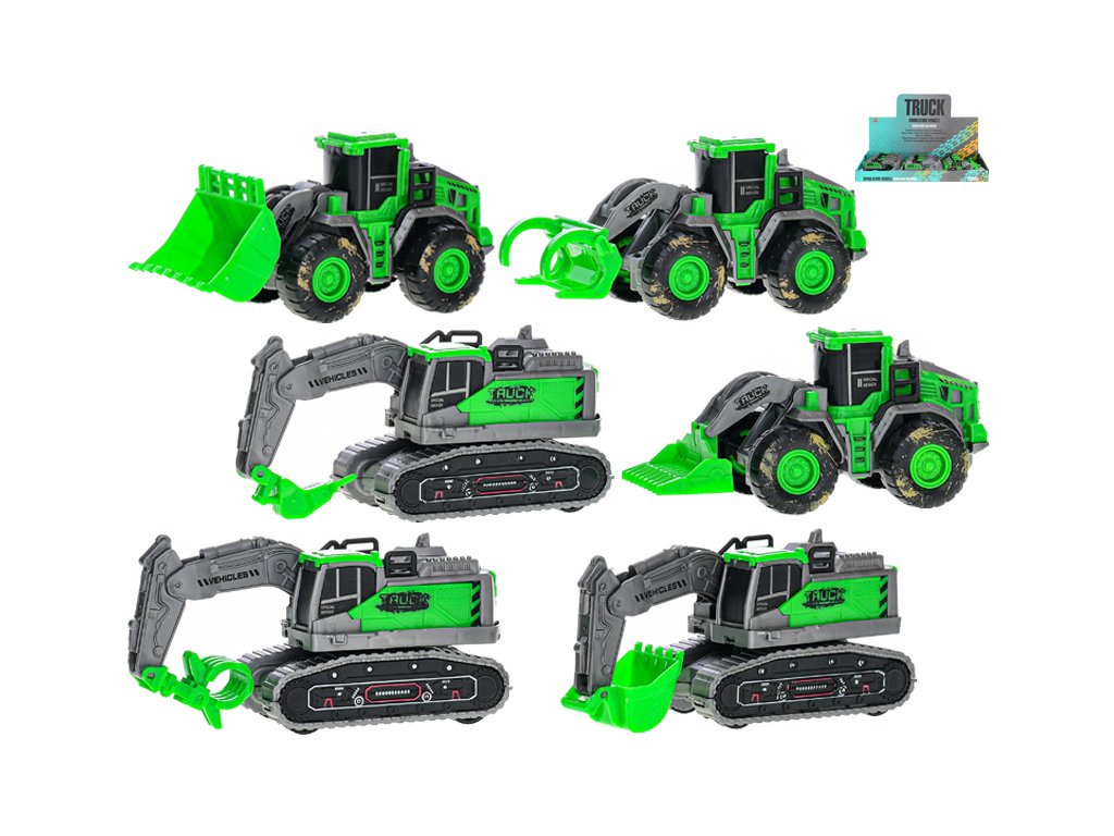 Stavební vozidla zelená 11,5cm na setrvačník 9druhů 12ks v DBX
