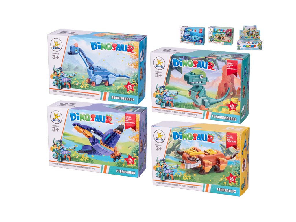 Stavebnice dinosaurus 62-76ks v krabičce 6druhů 12ks v DBX