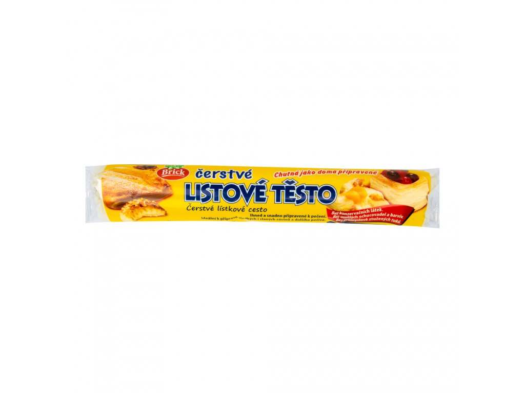 Těsto vyjmeme z lednice a po cca 5 minutách i s pečicím papírem na pracovní desce, nebo přímo na pečicím plechu. Pečící trobu předehřejeme na 200-220 °C. Připravenou náplň (sladkou, nebo slanou) rozložíme rovnoměrně na střední pás těsta. Okraj jednoho z volných pásů lehce potřeme vodou, nebo rozšlehaným vejcem, aby se při následném zavinutí přeložením obou těchto volných pásů těsto snadno spojilo. Obdobně postupujeme i při uzavření obou konců závinu. Závin potřeme rozšlehaným vejcem a pečeme 20-25 minut dozlatova v předehřaté troubě. Po otevření ihned spotřebujte.Nutriční složení