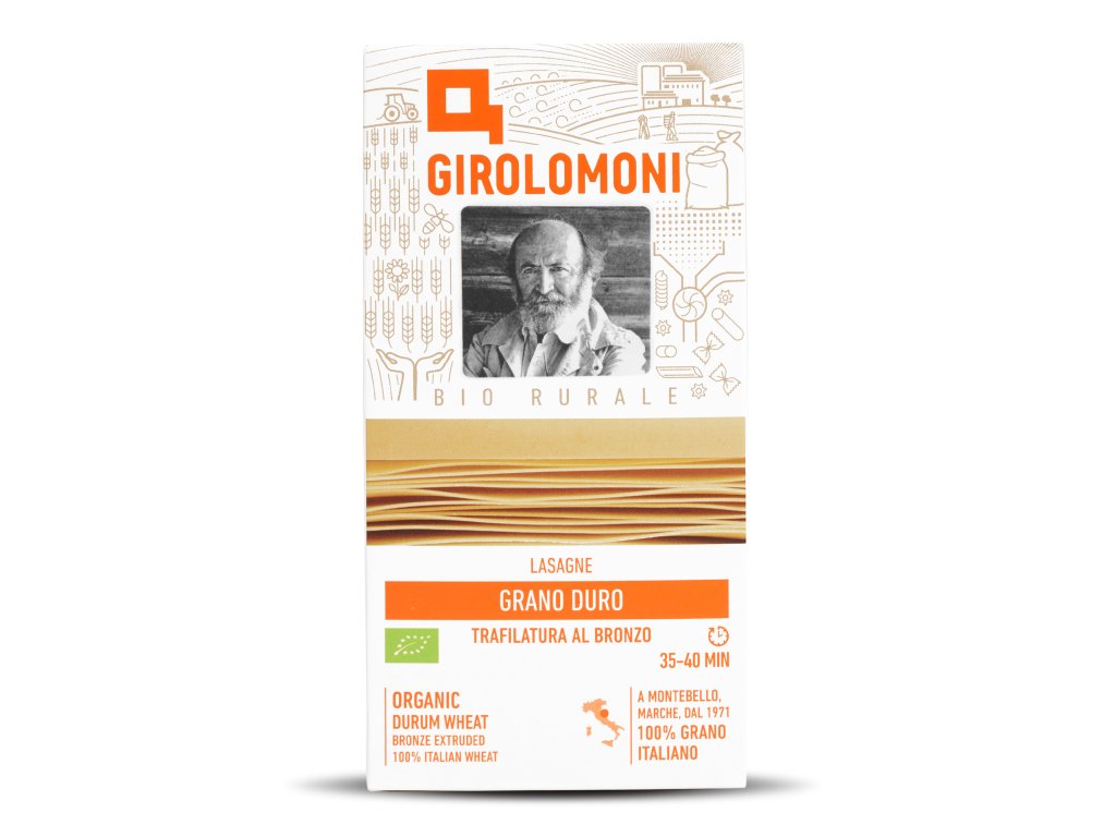 Gino Girolomoni byl italský starosta, který už před 50 lety prosazoval návrat k poctivému a čestnému způsobu zemědělského hospodaření. Začal tedy pěstovat bio tvrdozrnnou pšenici, ze které pak jako první v Itálii vyráběl celozrnné semolinové těstoviny. V 70. letech minulého století Gino čelil nesmyslnému zákazu ze strany státu („celozrnné těstoviny jsou škodlivé"), tento zákaz však samozřejmě dávno neplatí a jeho potomci dnes vyrábějí celé spektrum vynikajících semolinových těstovin - bílých i celozrnných.
