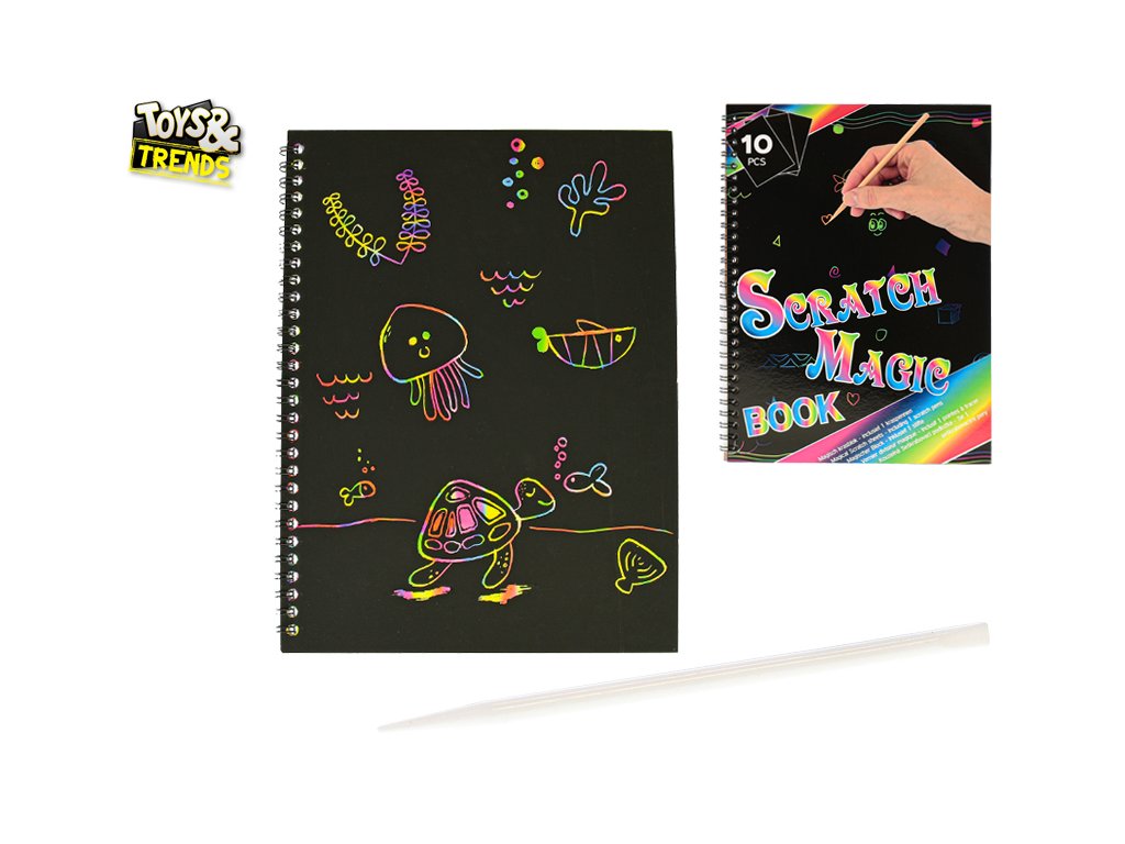 Toys&Trends magický notes 26x19cm se škrabacím perem v sáčku