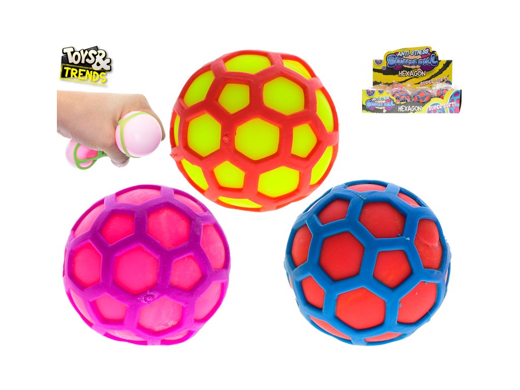 Toys&Trends míček hexagon strečový 6,5cm 3barvy 12ks v DBX