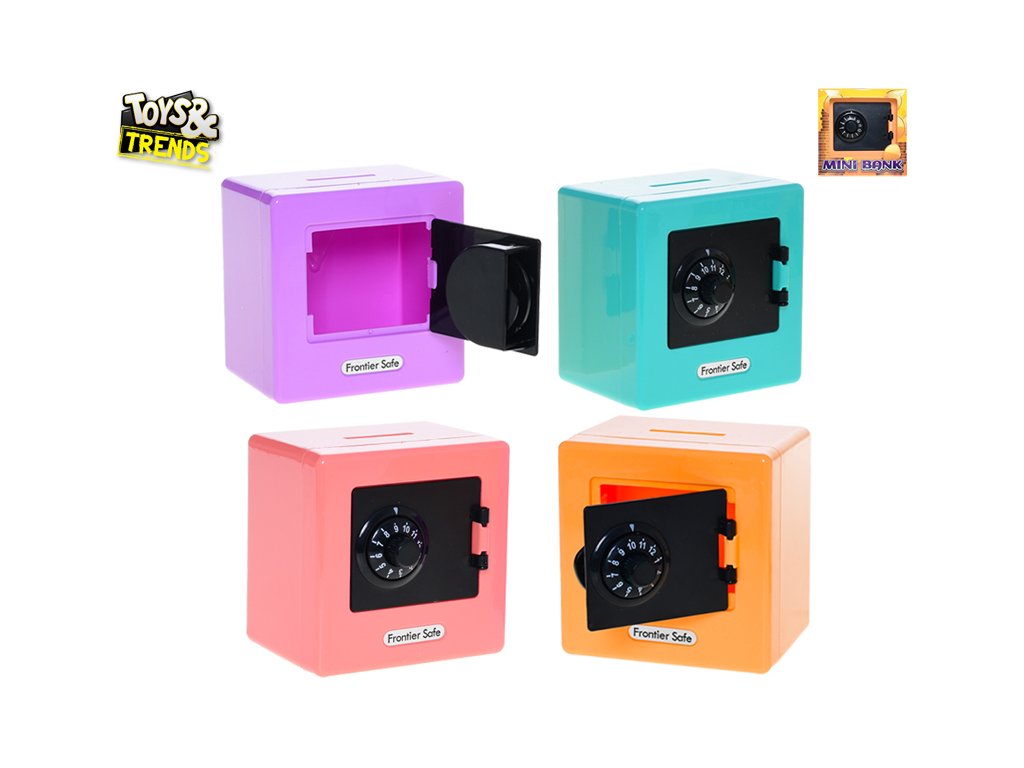 Toys&Trends pokladnička trezor 9x9cm s odemykáním na kód 4barvy v krabičce