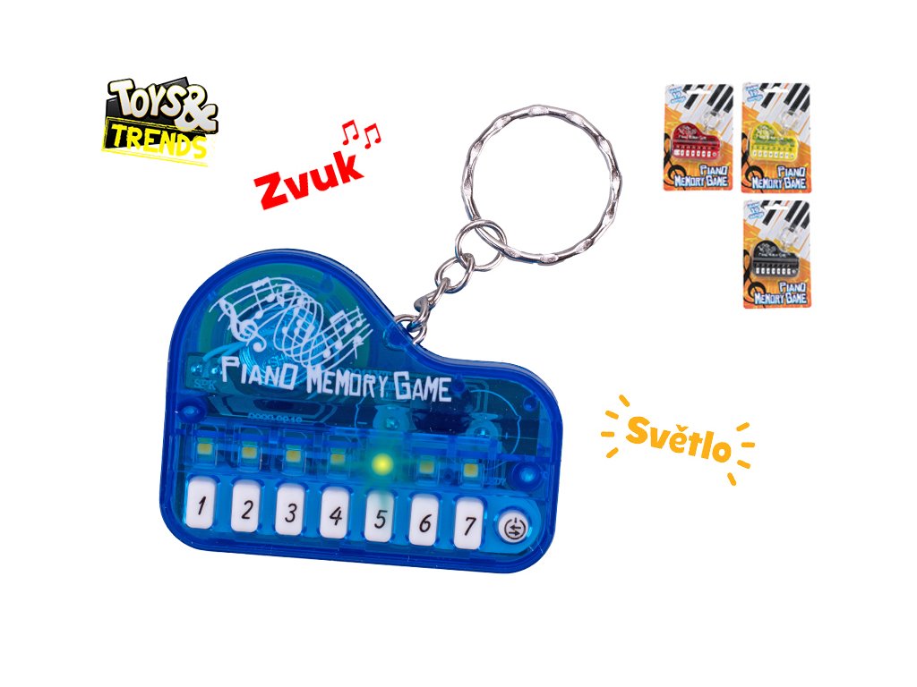 Toys&Trends přívěsek na klíče piano 6cm na baterie se světlem a zvukem 19 skladeb 4barvy na kartě