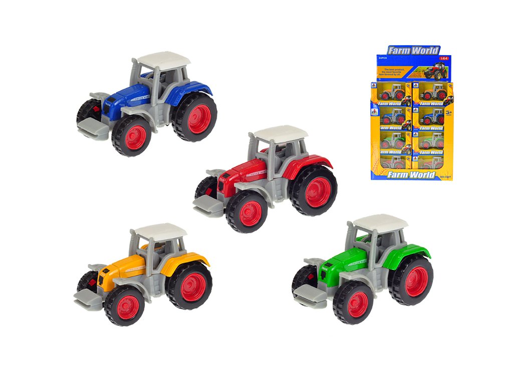Traktor 7cm kov 1:64 volný chod 4barvy v krabičce 24ks v DBX