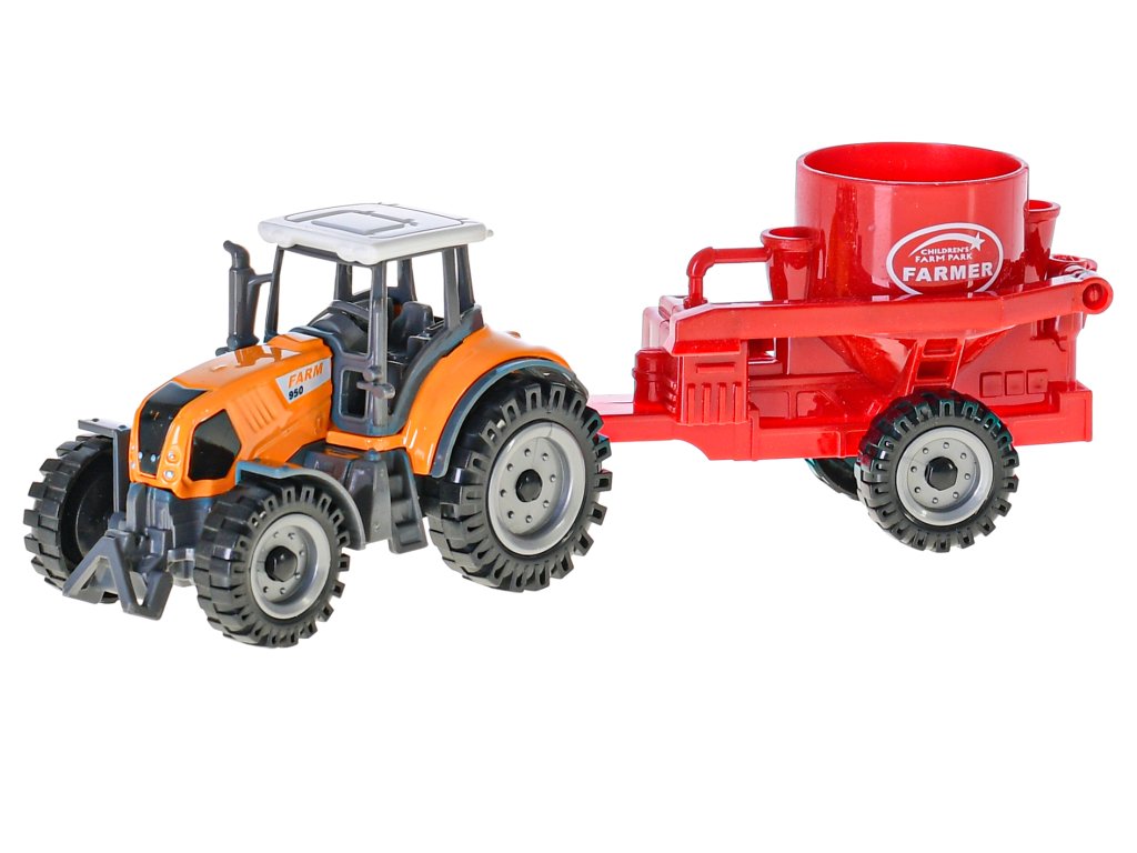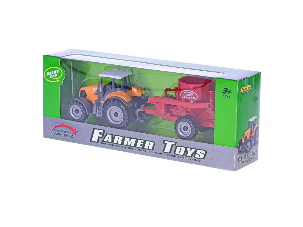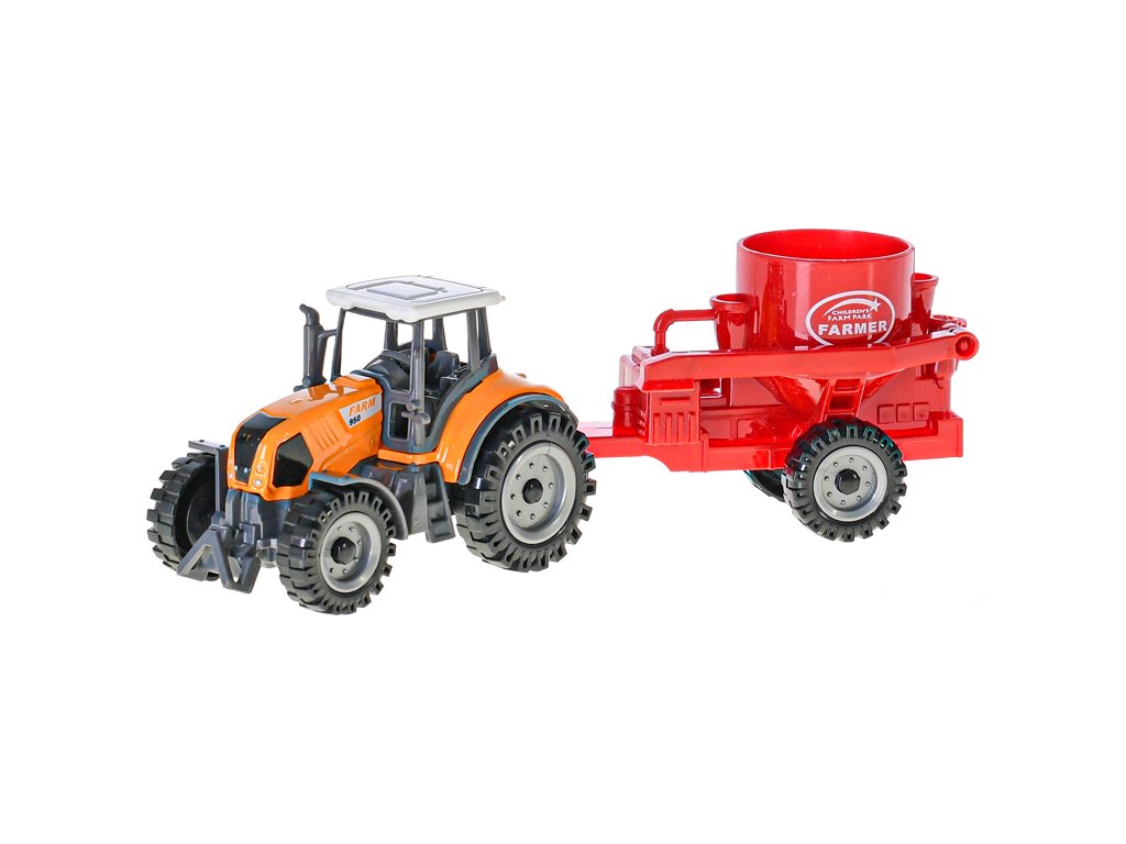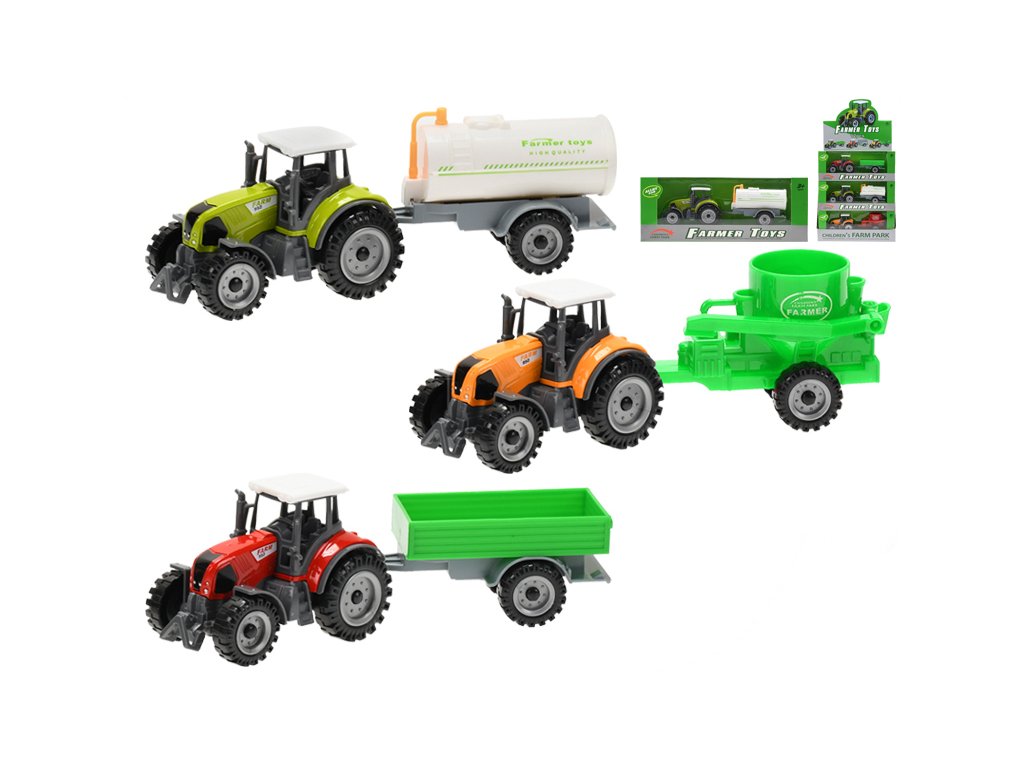 Traktor kov 19cm s přívěsem volný chod 3barvy v krabičce 12ks v DBX