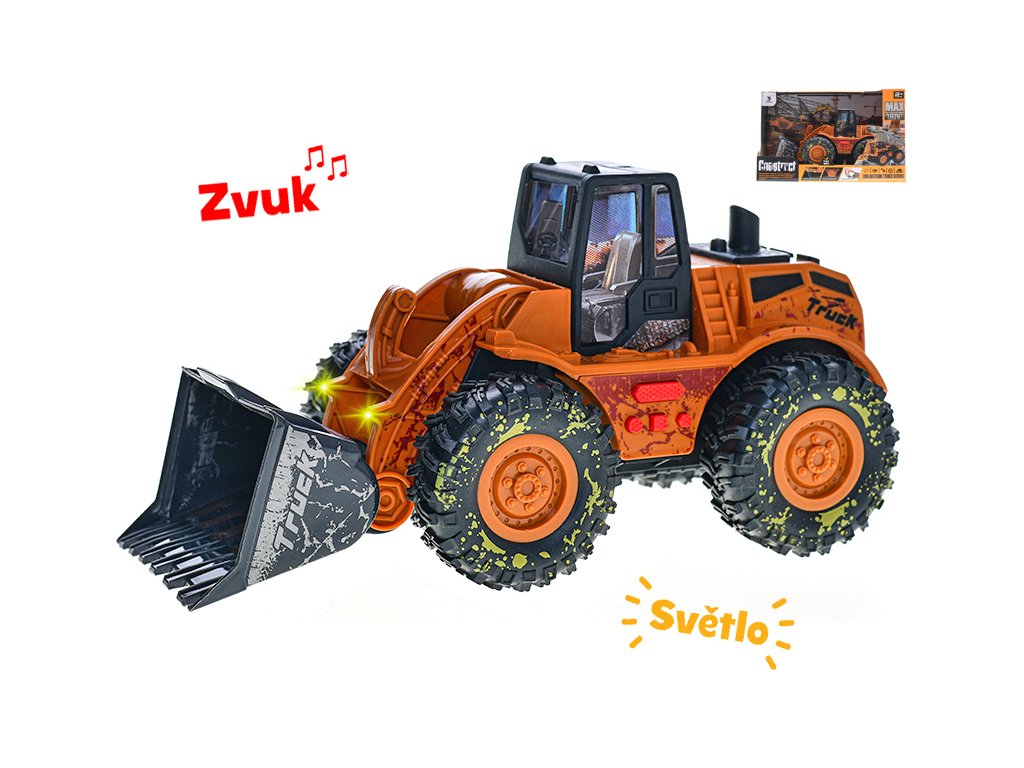 Traktor nakladač 25cm na setrvačník na baterie se světlem a zvukem v krabičce