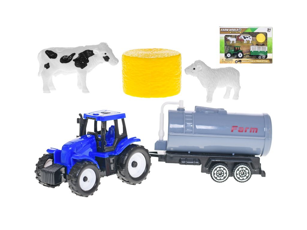 Traktor s vlečkou 16,5cm volný chod s doplňky 2barvy v krabičce