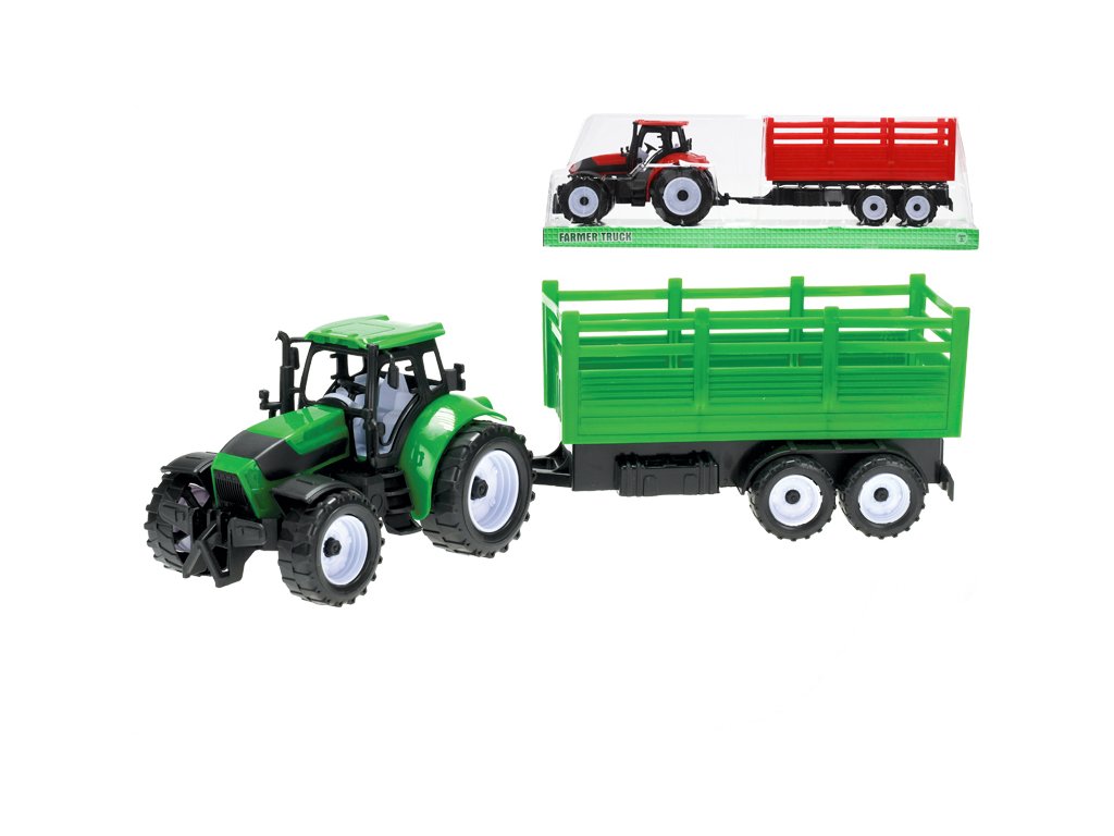 Traktor s vlečkou 38cm na setrvačník 2barvy v krabičce