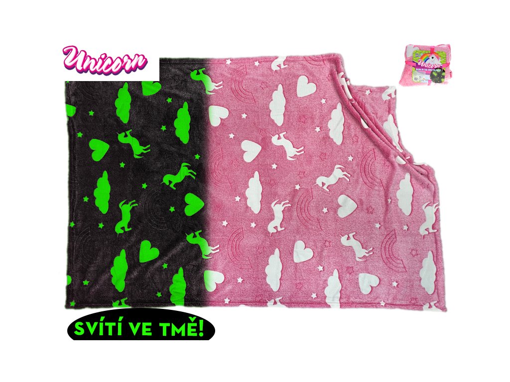 Unicorn deka 100x150cm s jednorožci ve tmě svítící 0m+ na kartě
