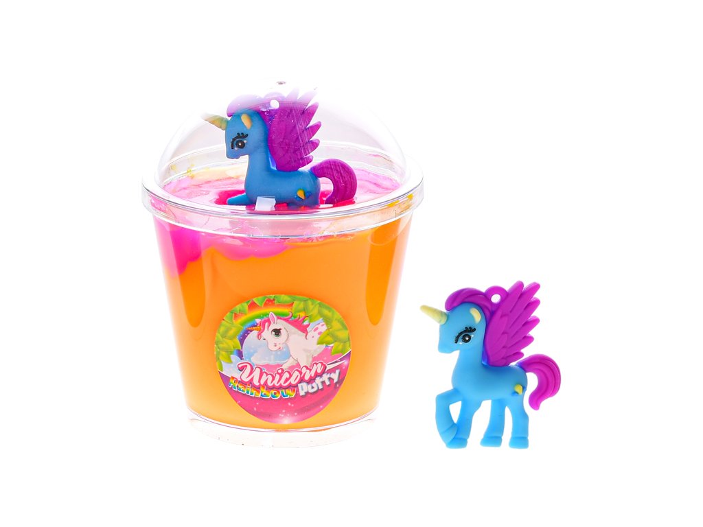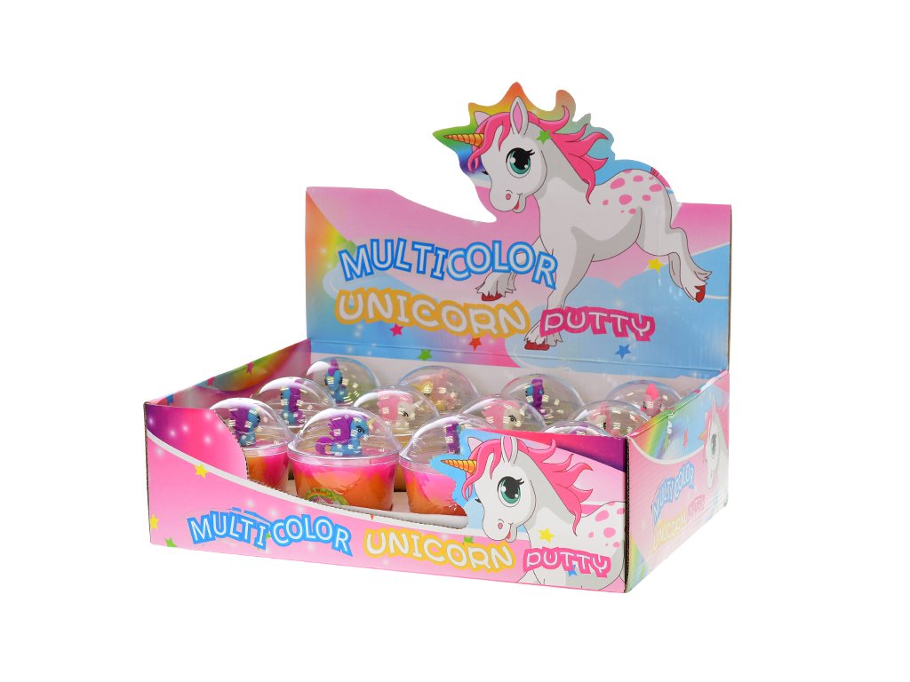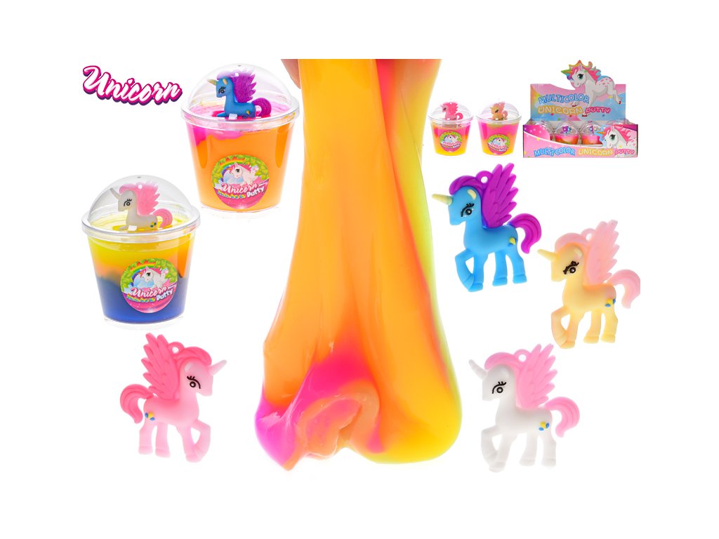 Unicorn hmota duhová v kelímku 9,5x7,5cm s jednorožcem 3barvy 12ks v DBX