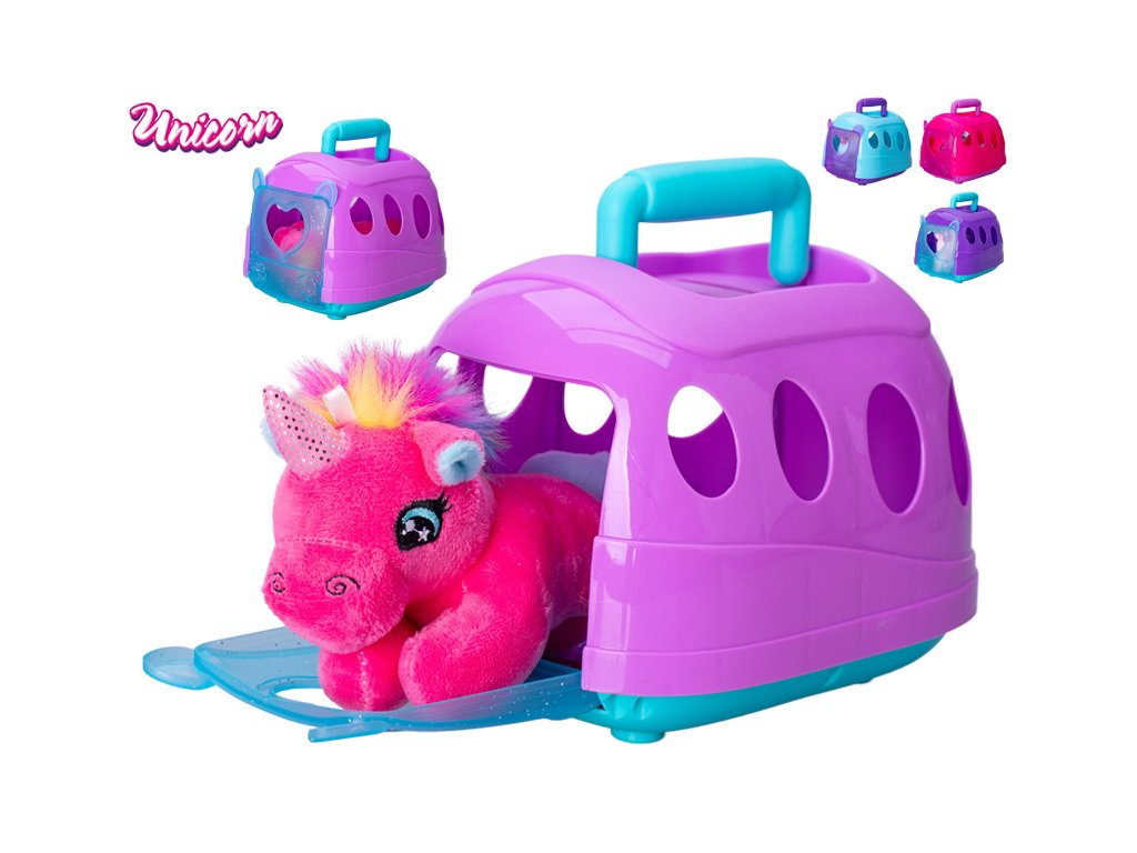 Unicorn jednorožec plyšový 14cm ležící v přepravce 4barvy