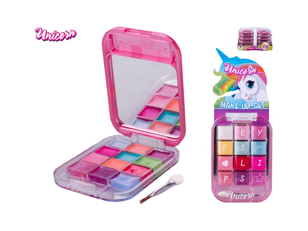 Unicorn make-up paletka se zrcátkem s lesky na rty 6ks a oč. stíny 2barvy 6ks na kartě 20ks v PDQ