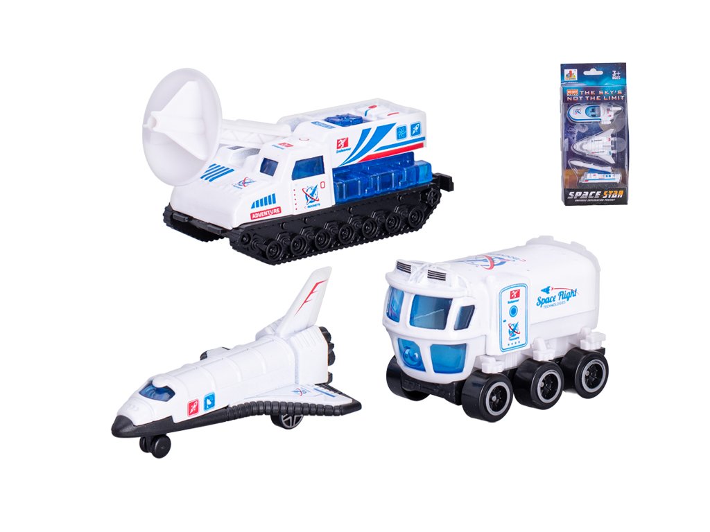 Vesmírná vozidla 5,5-8cm kov volný chod 2druhy 3ks v krabičce