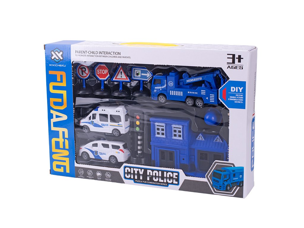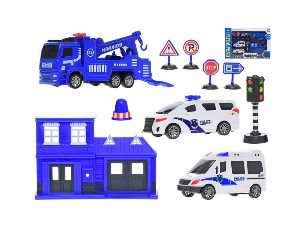 Vozidla policejní 11-14cm zpětný chod 3ks s doplňky 2druhy v krabičce