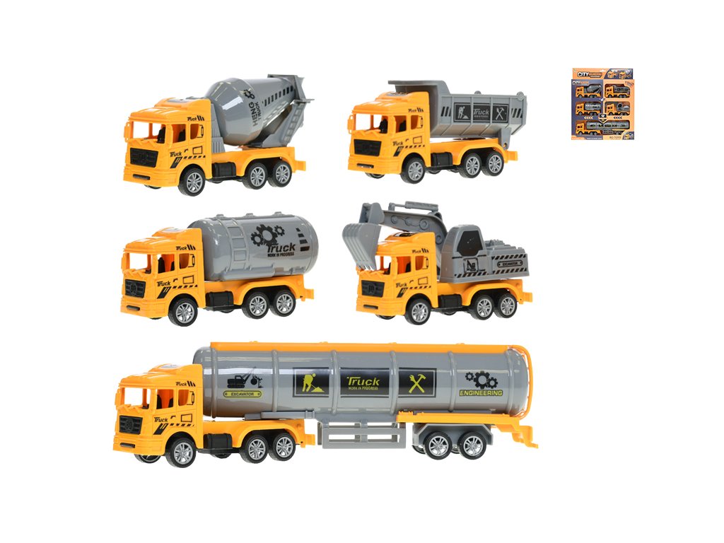 Vozidla stavební 11-23,5cm zpětný chod 5ks v krabičce