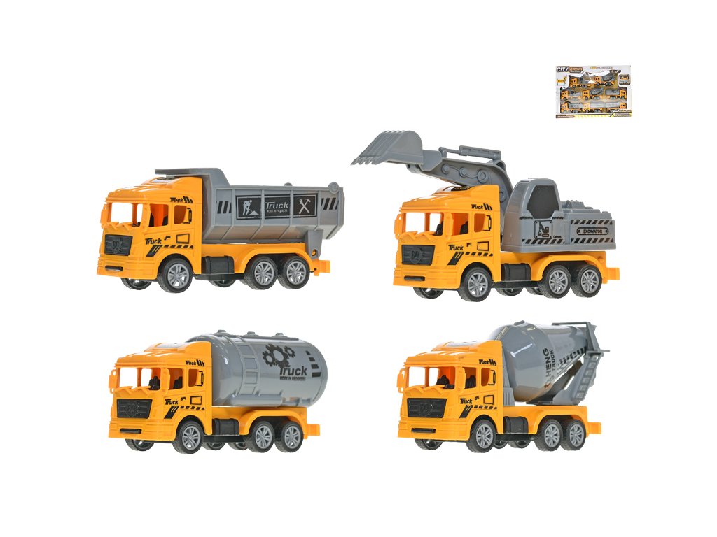 Vozidla stavební 11cm zpětný chod 8ks v krabičce