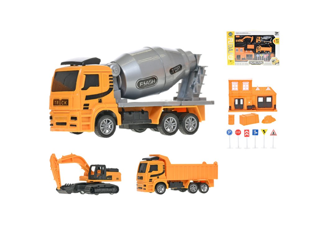 Vozidla stavební 12-14cm zpětný chod 3ks s doplňky v krabičce