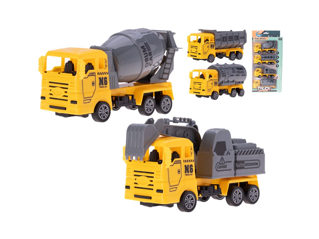 Vozidla stavební 13cm zpětný chod 4ks v krabičce